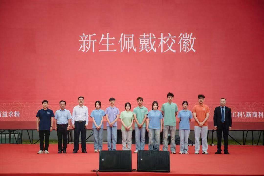 该校校领导为大一新生代表佩戴了校徽,勉励他们与湘理共成长、同湘理共进步,牢记并践行“知行合一、精益求精”的湘理校训,将来成长为有志气、有骨气、有底气、有霸气的栋梁之材。